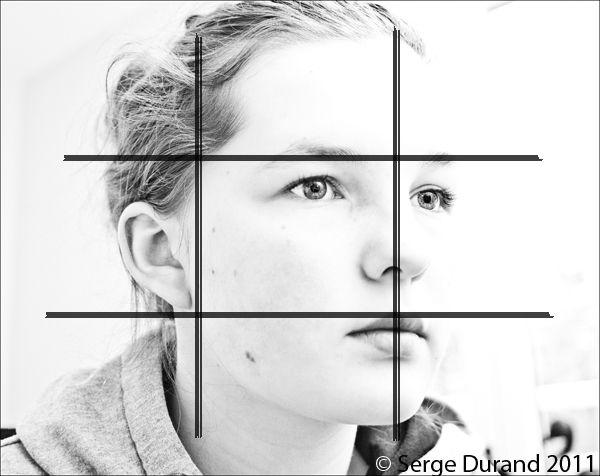 Mon fils occupe le cadre à droite, avec le visage posé sur le tiers vertical droit et les yeux sur l »horizontale supérieure. Il me semble que l’axe des yeux est au croisement des deux lignes de force, non?